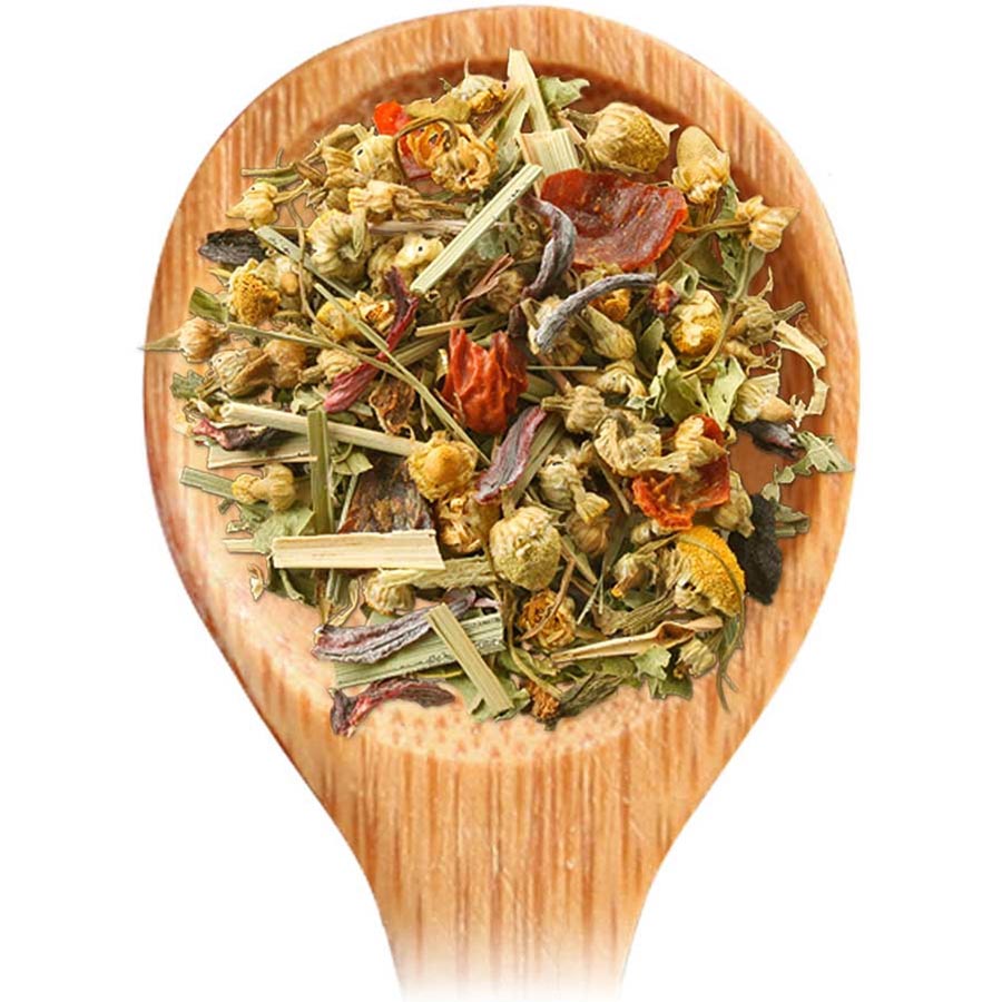 There are few better ways to relax than with Chamomile Citron, a caffeine-free, herbal infusion from Tea Forte. Not only is it delicious, it also has a number of calming and health-giving qualities thanks to its all-natural, organic ingredients. Egyptian chamomile is the heart of the blend, floral and refreshing yet also rich in calming properties. Chilean rosehips impart sweet and tart notes while also supplying immune-supporting Vitamin C. Meanwhile, hibiscus enhances the floral dimension and bestows high levels of antioxidants to the blend, reducing cholesterol levels and lowering blood pressure. Thai lemongrass and lemon verbena are thought to increase relaxation and aid with sleep, while licorice root relieves fatigue, depressions, colds and flus. All these ingredients come together in perfect unison, bursting with flavor, healthiness and happiness.
