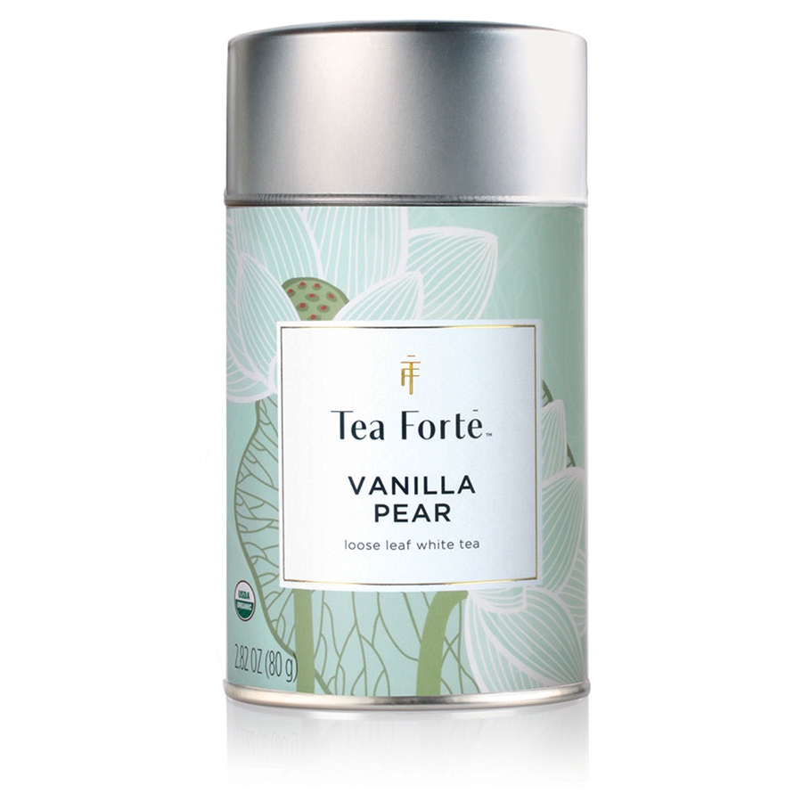 Vanilla Pear White Tea is a creation of Tea Forte. This company began in Massachusetts in 2003, with a highly stylized product line based on traditional Japanese tea drinking ceremonies, intended to “elevate a cup of tea into an extraordinary experience for all your senses.” Today, they present an unparalleled variety of handcrafted teas and tea accessories with sumptuously decorated packaging. Enjoyed in over 35 countries, their products can be found in the most prestigious restaurants, hotels, resorts and luxury retailers, making them ultimate ambassadors of the tea-drinking experience.