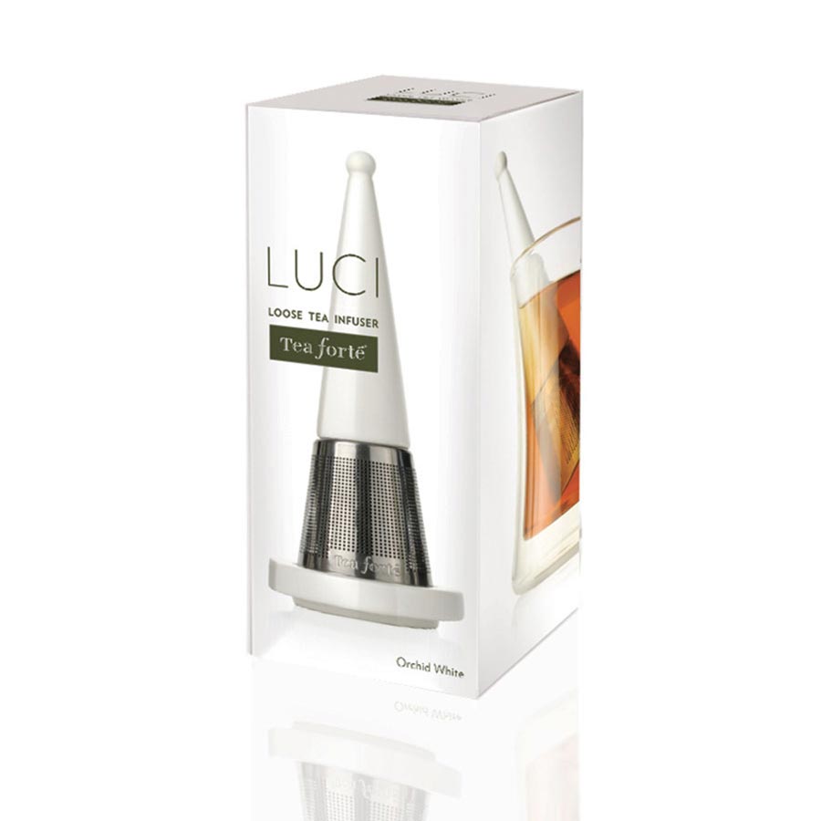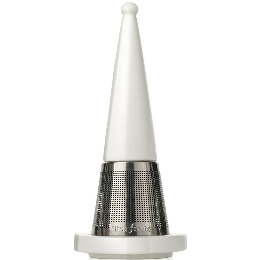 Brewing tea doesn’t get easier or more convenient than with our Luci Loose Tea Infuser, an innovative addition to Tea Forte’s functional tea accessories. This easy-to-use loose tea infuser has a lovely orchid white design, and is great for steeping a cup, mug or small teapot of tea. Simply add loose tea leaves into the stainless steel base, twist on the ceramic, cone-shaped top, and steep away! Once you’ve finished, you can place the infuser on the included tea tray to capture drips.