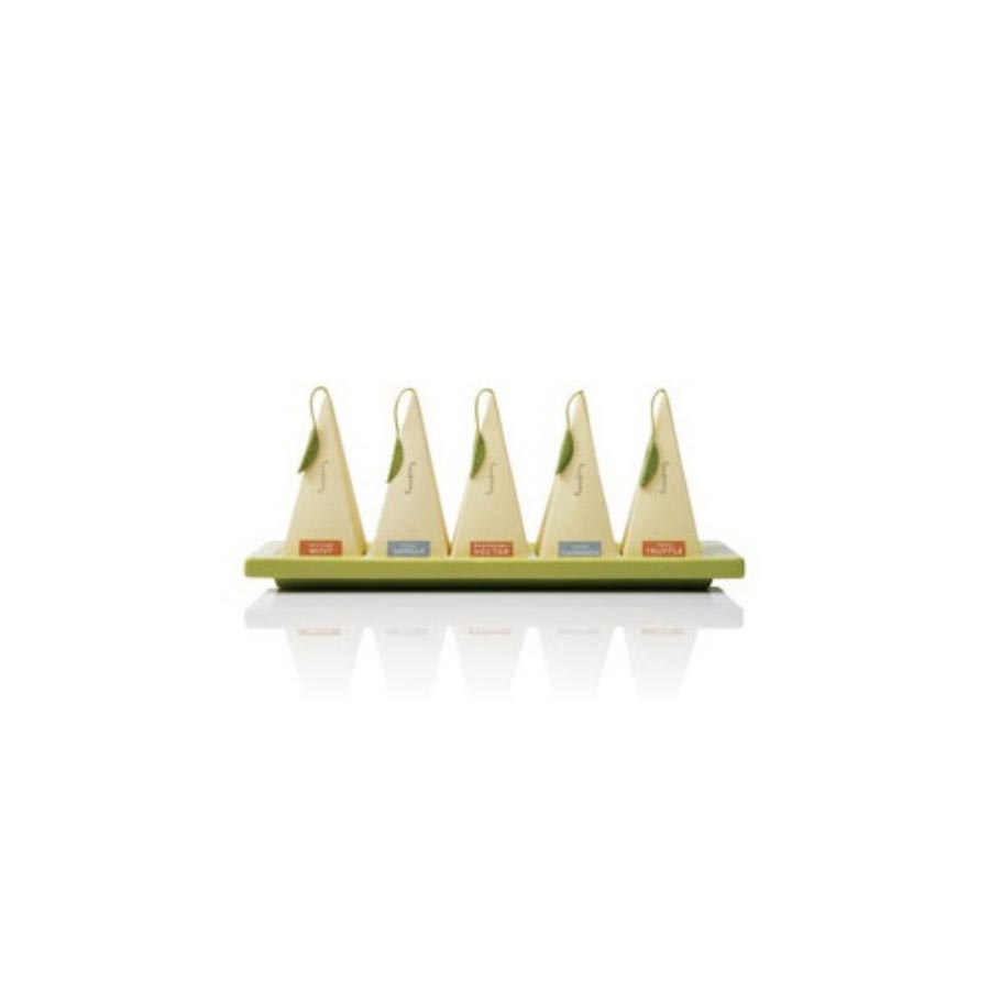 Tea Forte Tea TrestleThe Tea Trestle is perfect for entertaining with beautiful style. Display Tea Forte's pyramid infusers in this lovely ceramic tray by Tea Forte. Fits up to five of your favorite pyramid tea infusers. Great to impress guests, for hotels, B&Bs, and caterers. Available in two beautiful colors - soothing Celery Green and pure Bone White.Ingredients: Ceramic.Storage: room temperatureAvailability: Usually ships within 1 business days. Product is non-perishable and can ship via Ground service.
