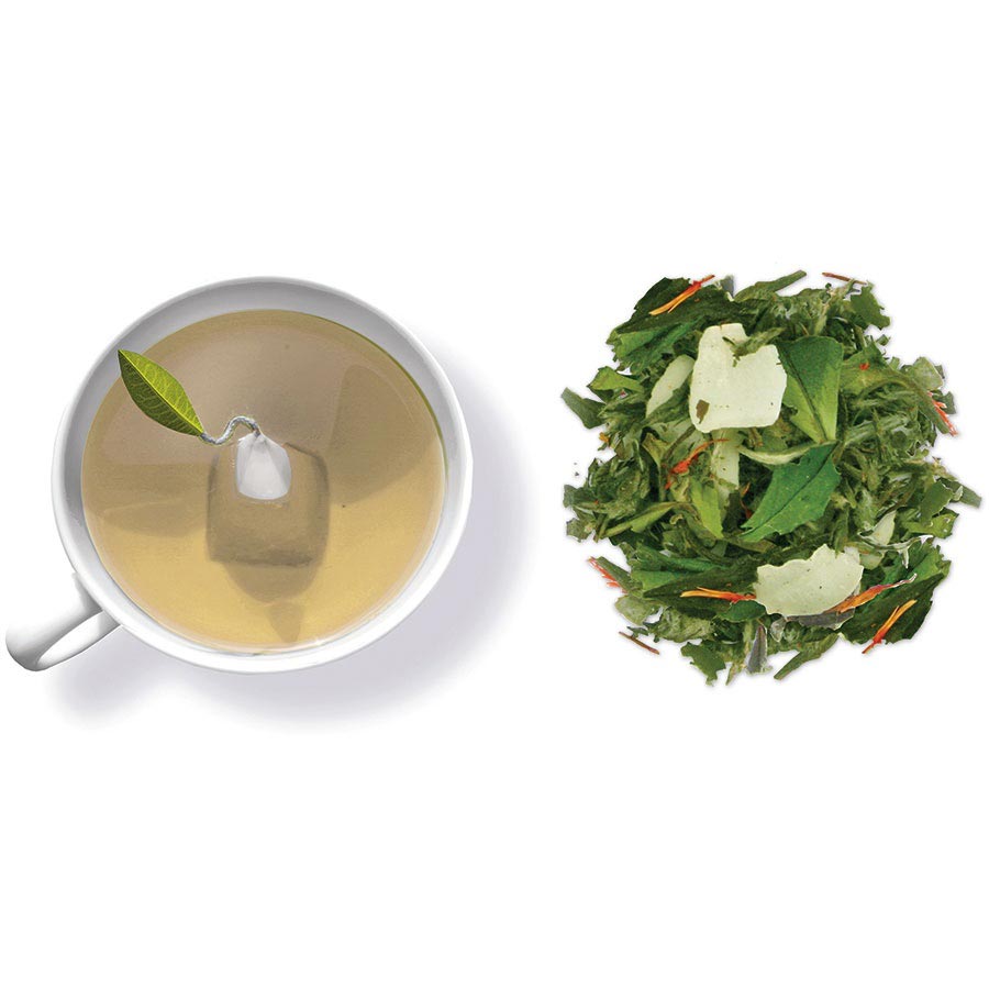 Ingredients: Organic white tea, natural flavors, organic coconut pieces, organic safflower petals.