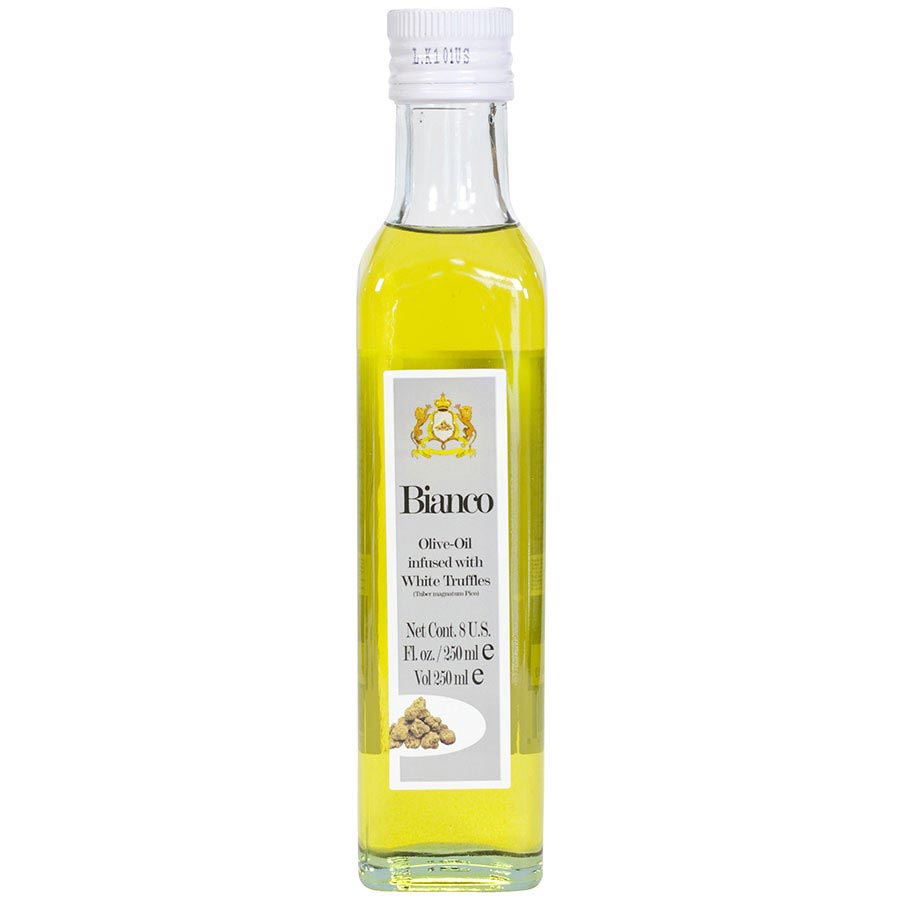 A:The oil is infused with white truffles but that happens before the packaging process, so there aren't any truffles in the bottle. Both Urbani and Eugenio Brezzi are renown for their truffle oils.