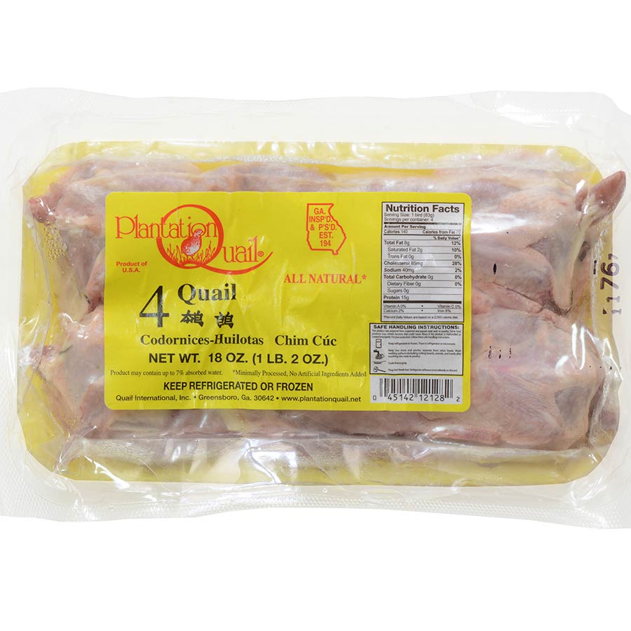 A:The whole quails come in a pack of 4 each (4 whole quails, not portioned).